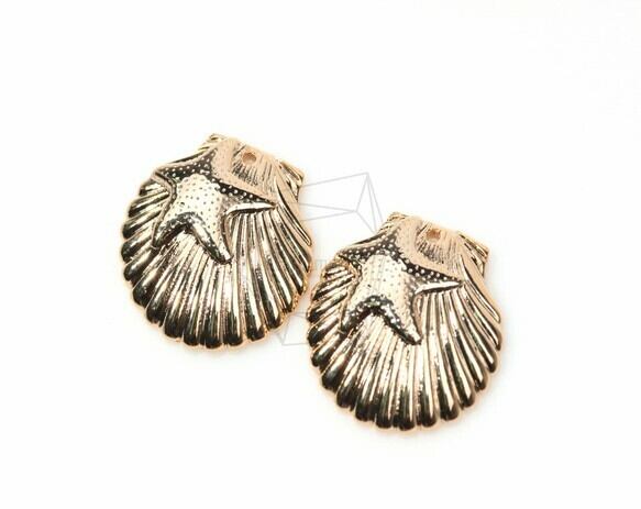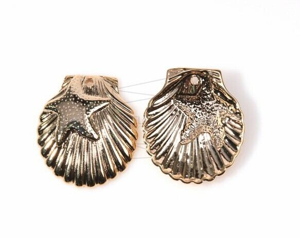 PDT-375-G/4Pcs-Shell on the starfish Charm/ 20mm x 20mm/Gold Plated Over Brass