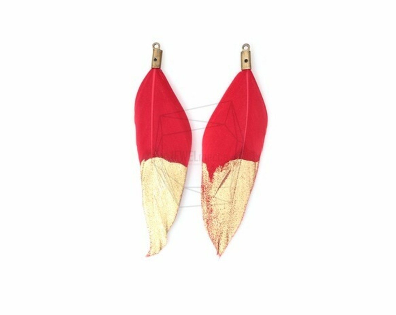 BSC-013-G/5pcs/Gold Dipped Red Color Duck Feather Charm/20mm x 53mm