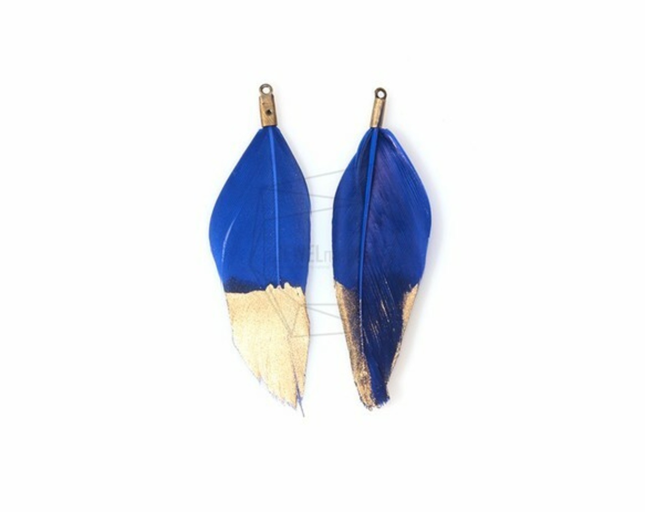 BSC-014-G/5pcs/Gold Dipped Blue Color Duck Feather Charm/20mm x 53mm