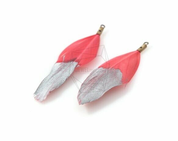BSC-015-G/5pcs/Silver Dipped Red Color Duck Feather Charm/20mm x 53mm