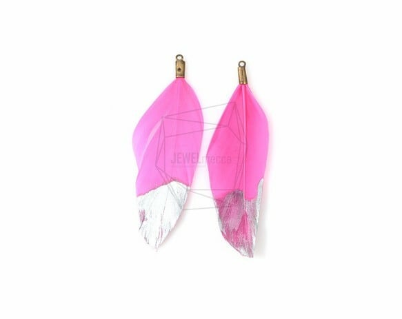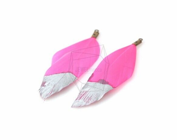 BSC-016-G/5pcs/Silver Dipped Pink Color Duck Feather Charm/20mm x 53mm