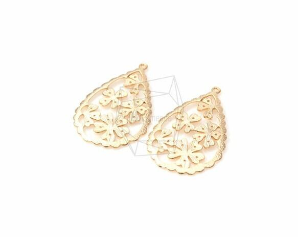 PDT-533-MG/2Pcs- Clover Teardrop Pendant/ 25mm x 39mm/Matte Gold Plated Over Brass