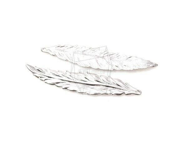 PDT-544-MR/2Pcs-Long Feather Pendant/ / 12mm x 56mm/Matte Rhodium plated Over Brass