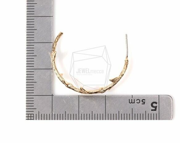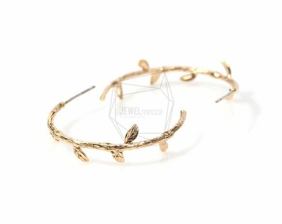 ERG-160-MG/2Pcs-branch Ear Post/ 23mm x 30mm /Matte Gold Plated over Brass/925 sterling silver post
