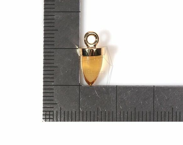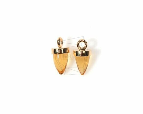 GLA-059-G/2Pcs-Round Cone Glass Charm(Champagne)/7mmx15mm /Gold Plated over Brass