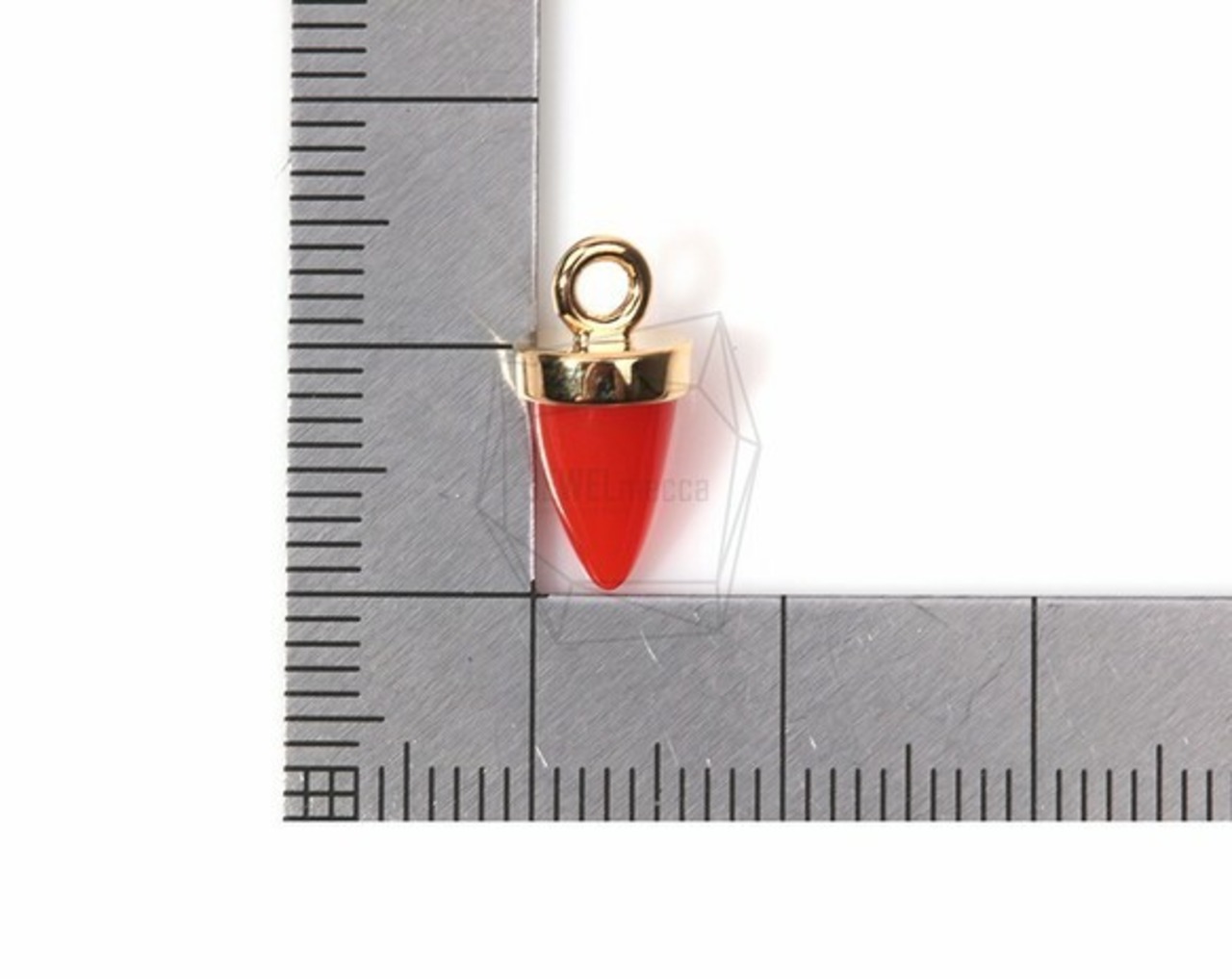 GLA-061-G/2Pcs-Round Cone Glass Charm(Red)/7mmx15mm /Gold Plated over Brass