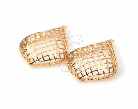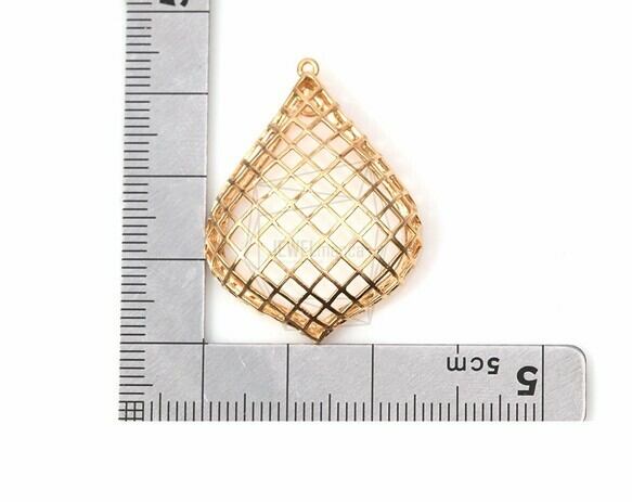 PDT-648-MG/2pcs/Curved Mash Tear Drop Pendant/27mm x 35mm/Matt Gold Plated Over Brass