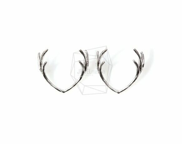 CNT-092-MR/4pcs/Tiny Deer Antler Pendant/18mm x 17mm/Matte Rhodium Plated Over Brass