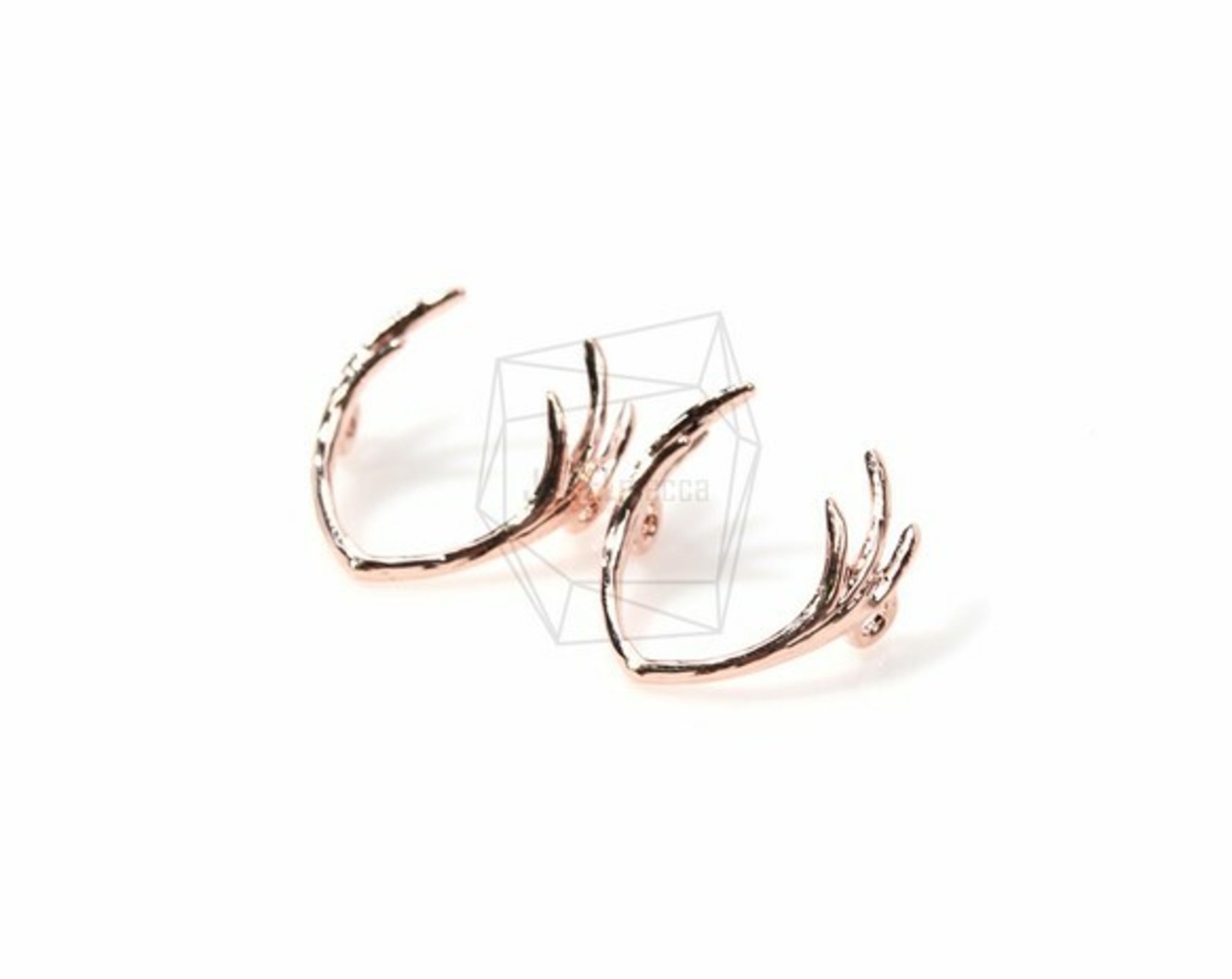 CNT-092-PG/4Pcs/Tiny Deer Antler Pendant/13mm x 17mm/Rose Gold Plated Over Brass