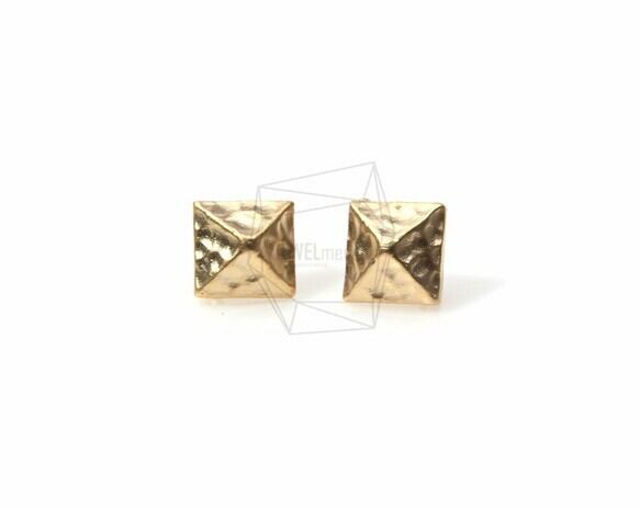 ERG-167-MG/4PCS/Textured Pyramid Ear Post/7mm x 7mm/ Matte Gold Plated Over Brass