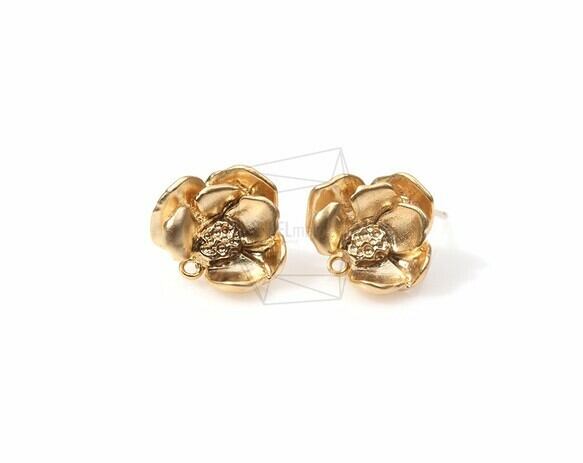 ERG-169-MG/2PCS/Jewel Blossomed Flower Ear Post/11mm x 13mm/Matte Gold Plated Over Brass