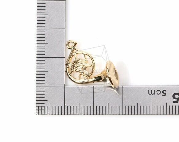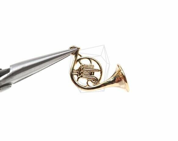 PDT-682-G/2PCS/Gold Plated French Horn Charm/19mm x 15mm