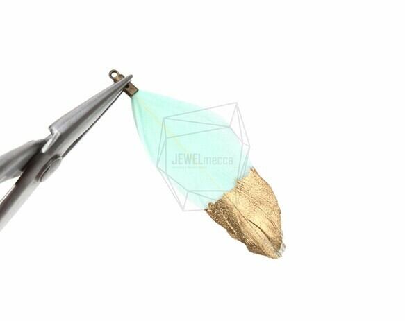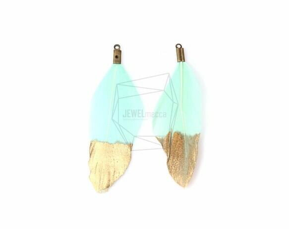 BSC-041-G/5pcs/Gold Dipped Mint Color Duck Feather Charm/20mm x 53mm