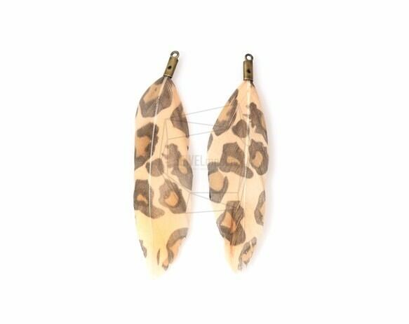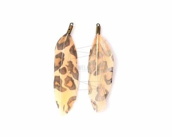 BSC-042-G/5pcs/Leopard Color Duck Feather Charm/20mm x 53mm