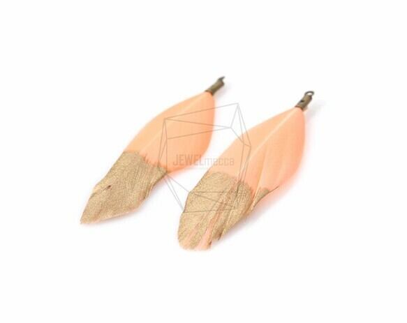 BSC-050-G/5pcs/Gold Dipped Apricot Color Duck Feather Charm/20mm x 53mm
