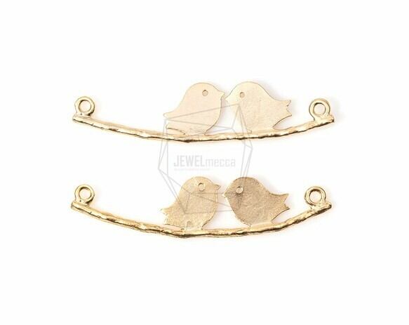CNT-099-MG/4PCS/Two Birds Bar Charm/45mm x 8mm/Matte Gold Plated Over Pewter
