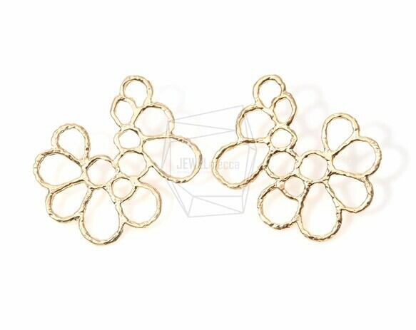 ERG-184-MG/2PCS/Abstract Bubble Earring Post/30mm x 35mm/Matte Gold Plated Over Brass