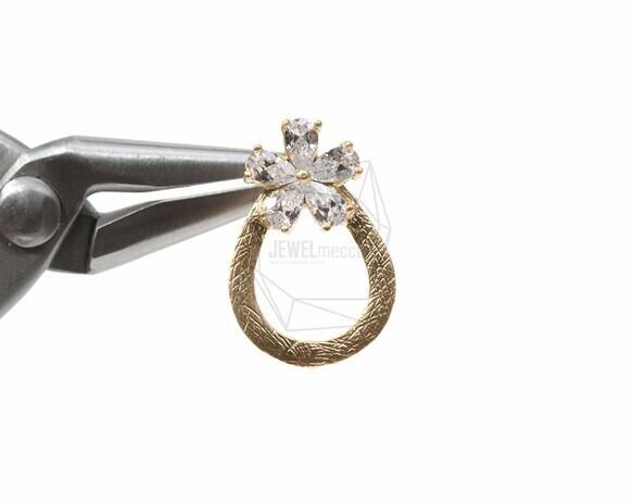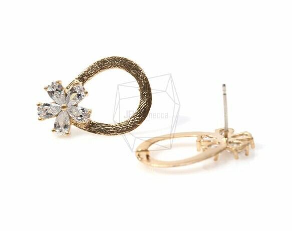 ERG-185-MG/2PCS/Flower Embellished Tear Drop Earring Post/15mm x 23mm/Matte Gold Plated Over Brass