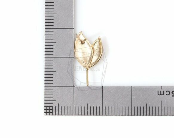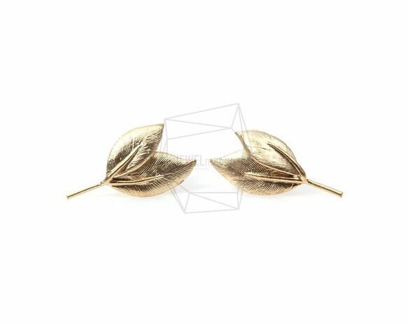 ERG-187-MG/2PCS/Two Leaf Earring Post/10mm x 19mm/Matte Gold Plated Over Brass
