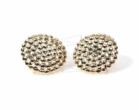 ERG-188-G/2PCS/Dotted Circle Earring Post/20mm x 20mm/Gold Plated Over Brass