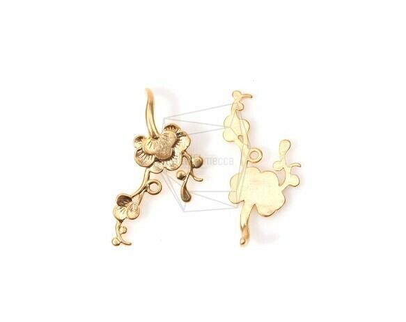 PDT-705-MG/2PCS/Flower With Vine Pendant/Matte Gold Plated Over Brass