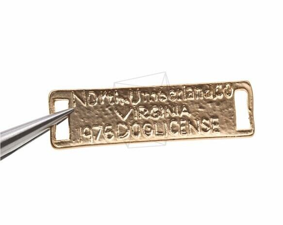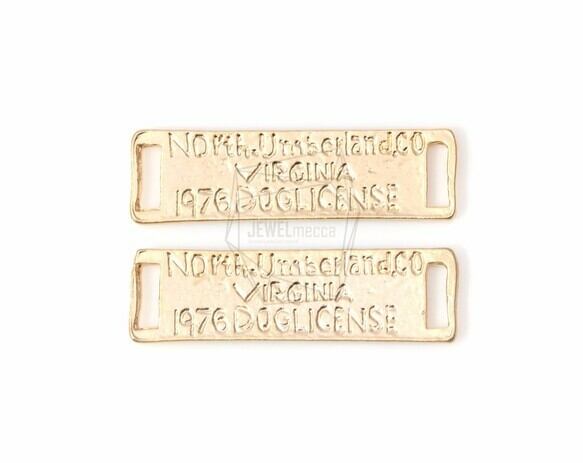 PDT-708-MG/2PCS/Rectangle Dog License Charm/45mm x 14mm/Matte Gold Plated Over Brass