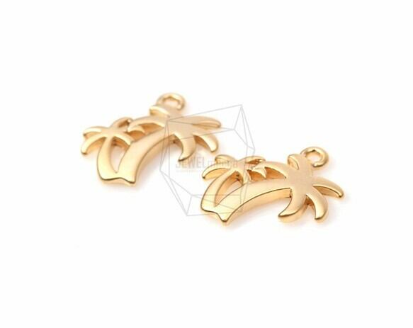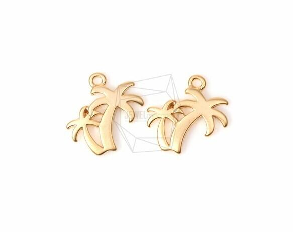 PDT-711-MG/4PCS/Palm Tree Pair Pendant/15mm x 19mm/Matte Gold Plated Over Pewter