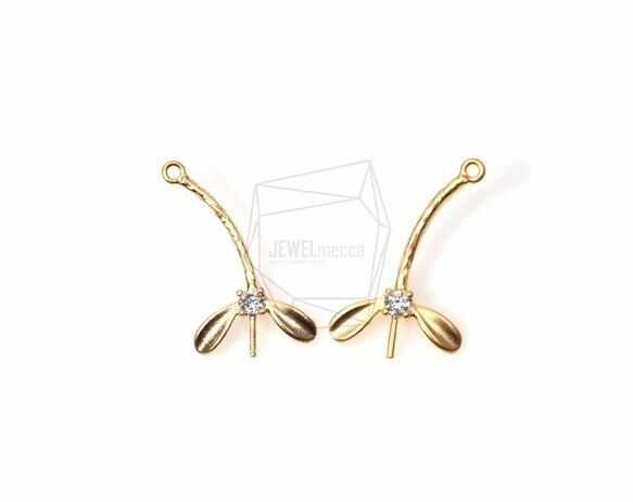 PDT-722-MG/2PCS/Two Leaf Bar Pendant/13mm x 20mm/Matte Gold Plated Over Brass
