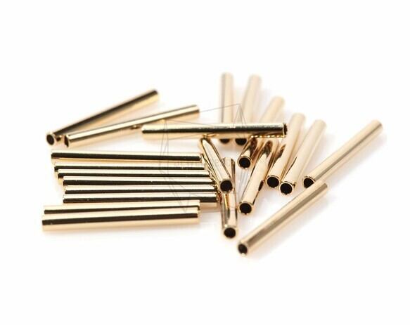 PDT-637-G/5PCS/Color Coated Cylinder Pendant/2cm/Gold Color Coated Over Brass