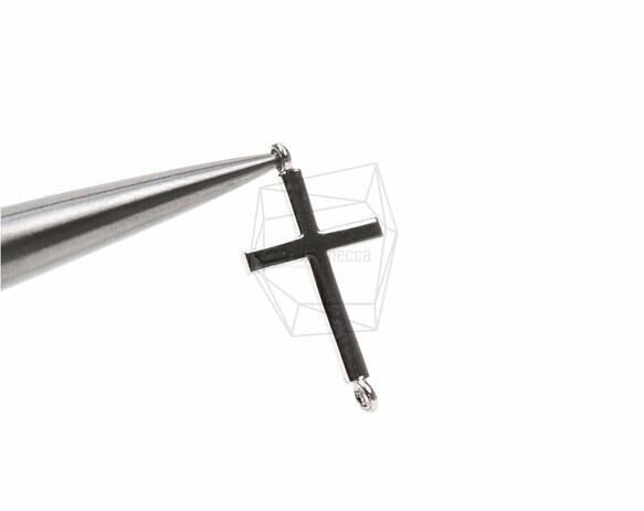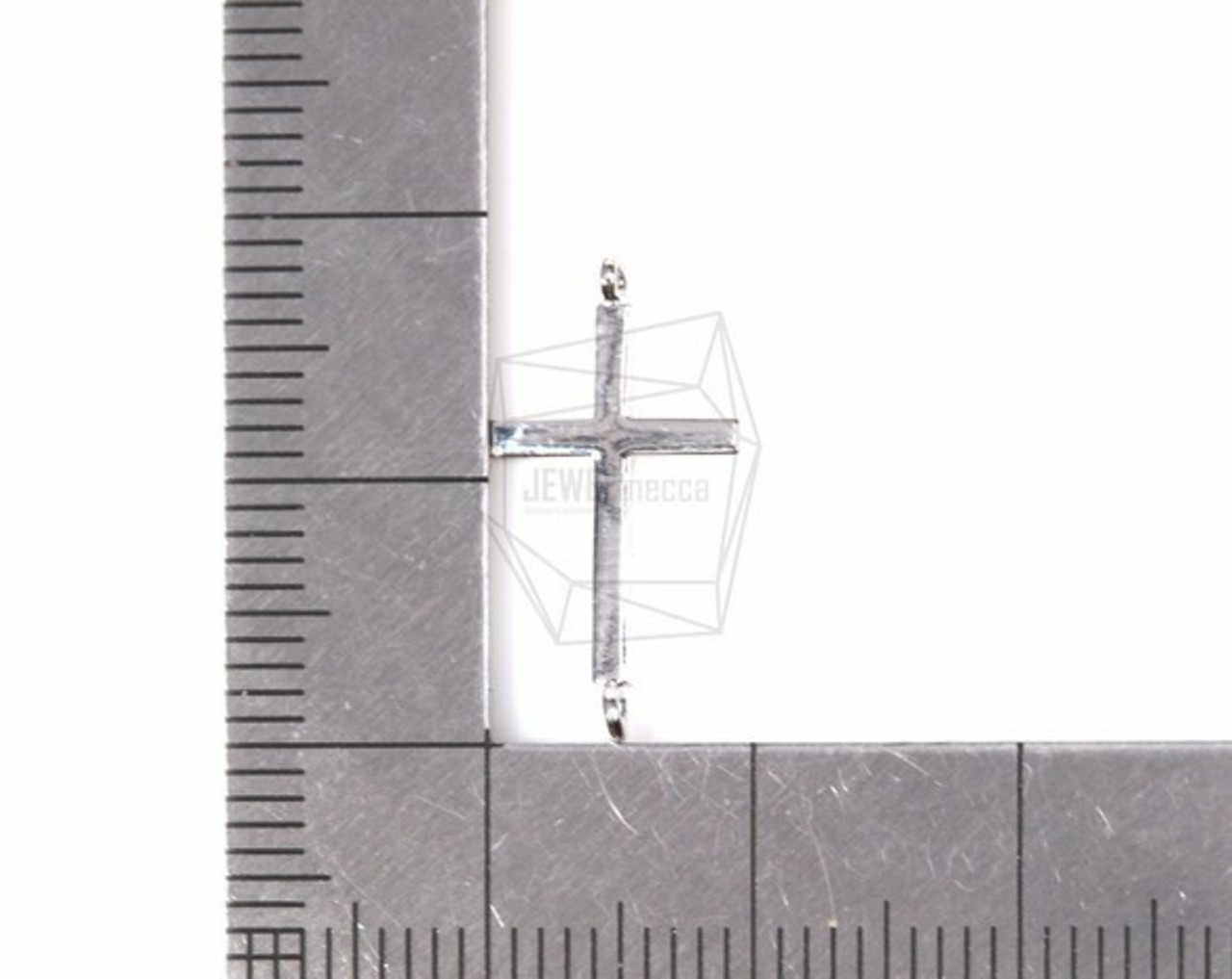 CNT-102-R/2PCS/Cross Charm/10mm x 16mm/Rhodium Plated Over Brass