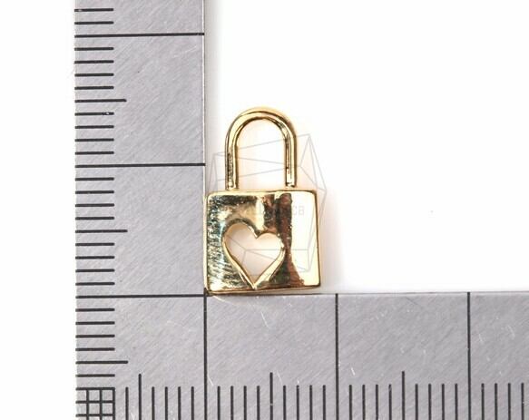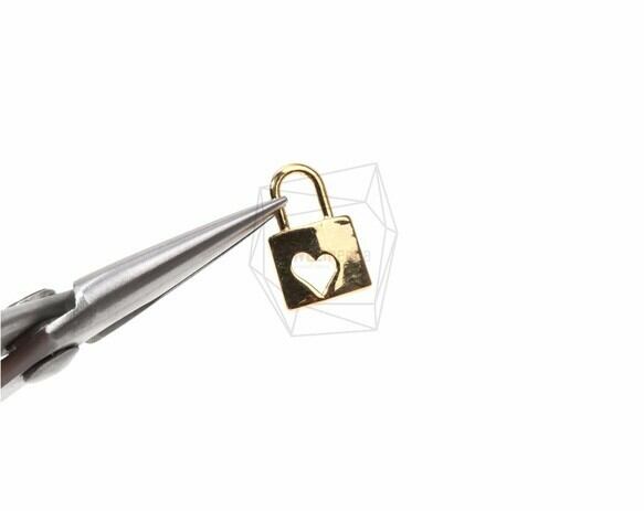 PDT-770-G/2PCS/Heart Cut Out Lock Pendant/9mm x 14mm/Gold Plated Over Brass
