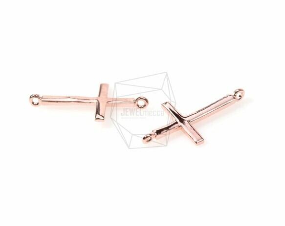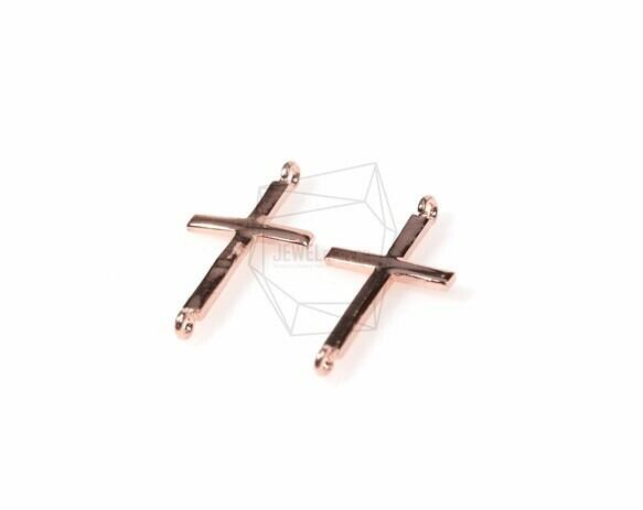 CNT-102-PG/2PCS/Cross Charm/10mm x 16mm/Rose Gold Plated Over Brass