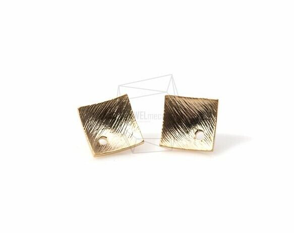 ERG-204-MG/2PCS/Bent Diamond Earring Post/13mm x 13mm/Matte Gold Plated Over Brass