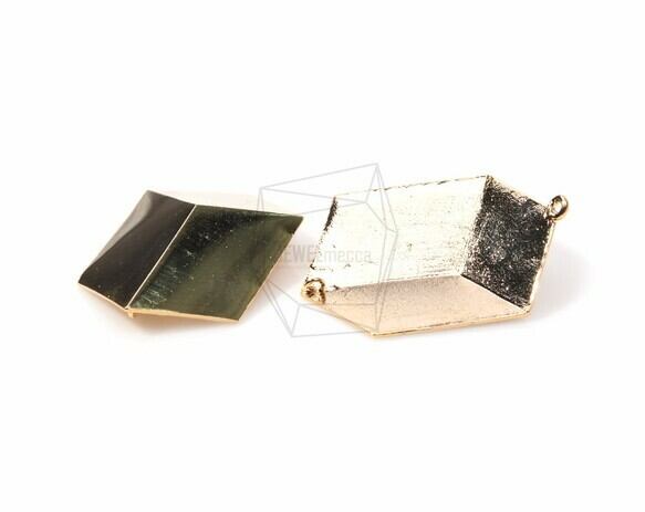 PDT-775-G/2PCS/Abstract Cube Pendant/27mm x 40mm/Gold Plated Over Brass