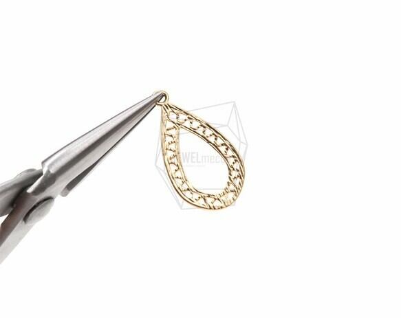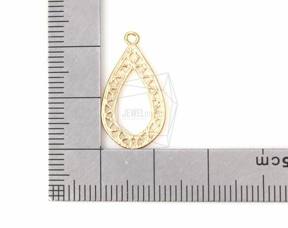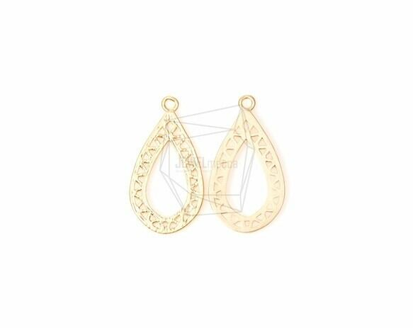 PDT-778-MG/2PCS/Patterned Hoop Pendant/12mm x 20mm/Matte Gold Plated Over Brass