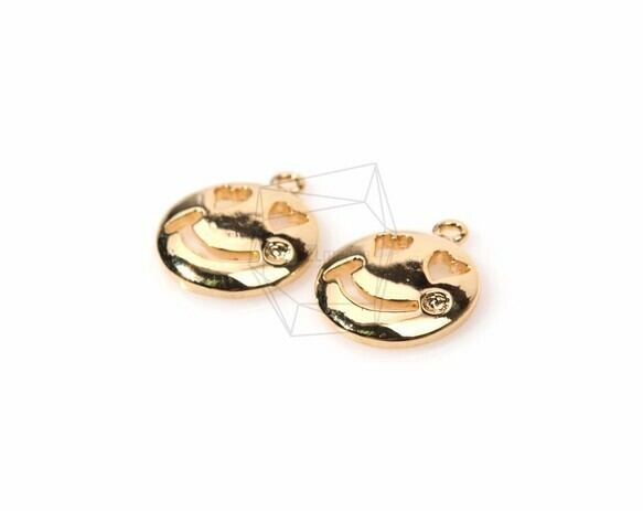 PDT-782-G/2PCS/Heart Eyes Face Pendant/12mm x 12mm/Gold Plated Over Brass