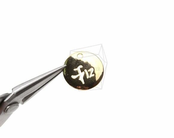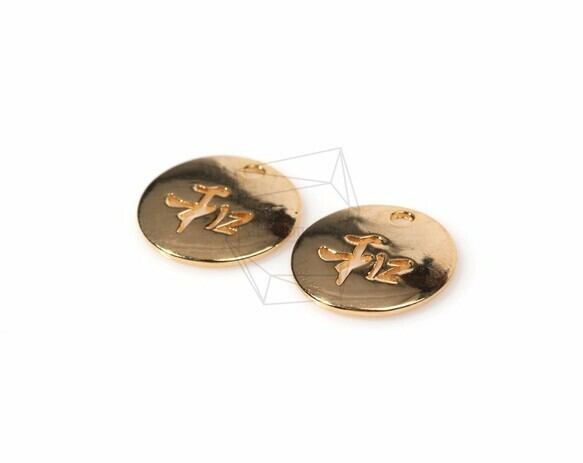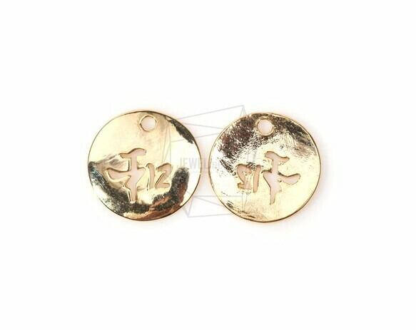 PDT-783-G/2PCS/Chinese Symbol Cut Out Pendant/16mm x 16mm/Gold Plated Over Brass