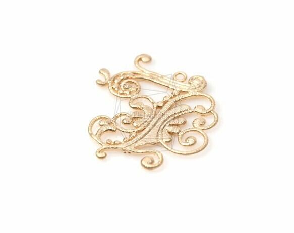 PDT-797-MG/2PCS/Fancy J Pendant/29mm x 30mm/Matte Gold Plated Over Brass