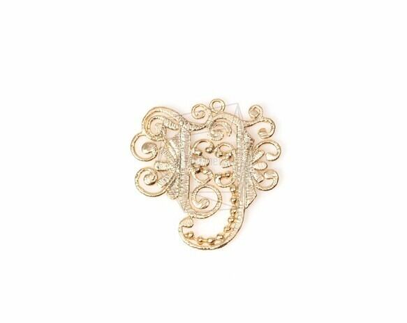 PDT-799-MG/2PCS/Abstract Double J Pendant/27mm x 27mm/Matte Gold Plated Over Brass