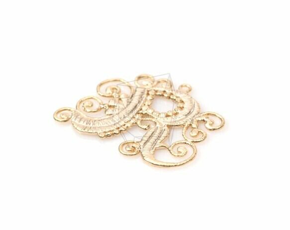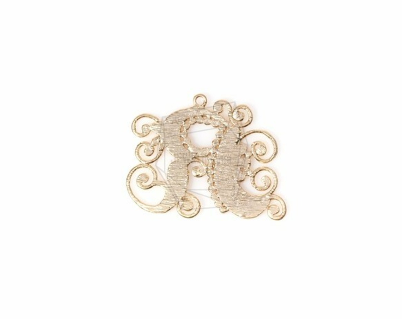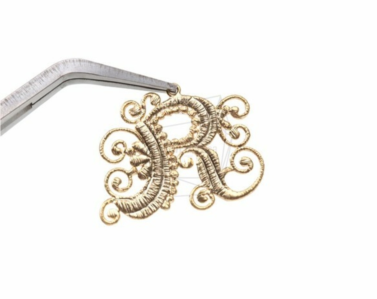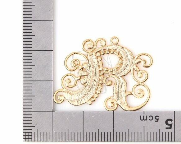 PDT-802-MG/2PCS/Fancy Alphabet R Pendant/23mm x 33mm/Matte Gold Plated Over Brass