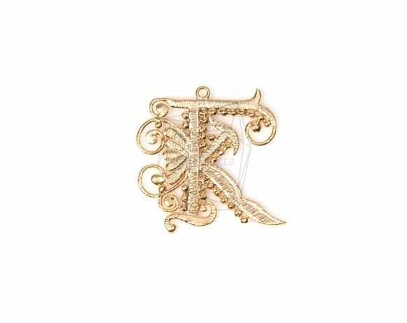 PDT-805-MG/2PCS/Abstract Initial Pendant/29mm x 26mm/Matte Gold Plated Over Brass