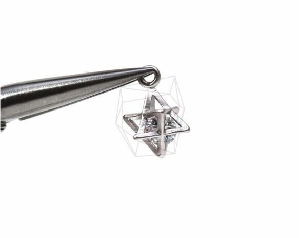 PDT-859-MR/4cs-Cubic in 3D triangle pendant/ 6mm x 6mm /Matte Rhodium Plated over brass