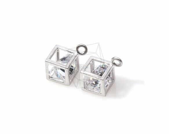 PDT-861-MR/2cs-Cubic in square Cube pendant/ 7mm x 7mm /Matte Rhodium Plated over brass