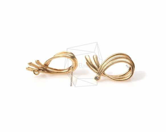 ERG-208-MG/2PCS/Swooping Oval Post Earring With CZ Stone/10mm x 22mm/Matte Gold Plated Over Brass