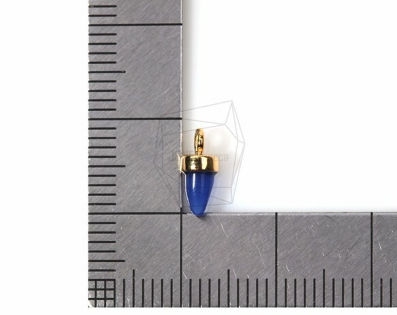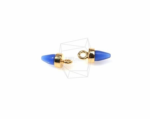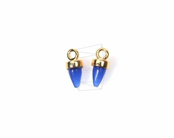 GLA-067-G(BW420)/2PCS/Mini Round Cone Glass Charm (Blue)/4mm x 9mm/Gold Plated Over Brass