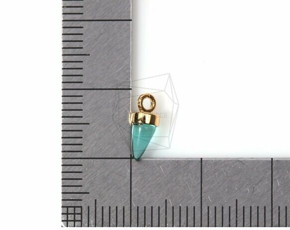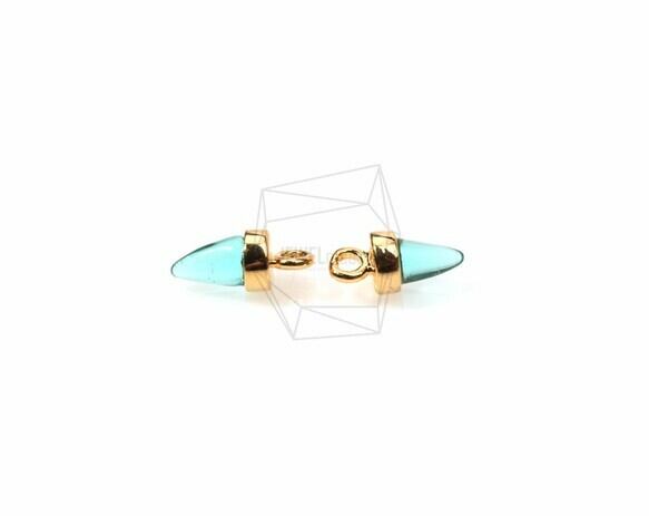 GLA-071-G(BA321)/2PCS/Mini Round Cone Glass Charm(Clear Turqouise)/4mm x 9mm/Gold Plated Over Brass