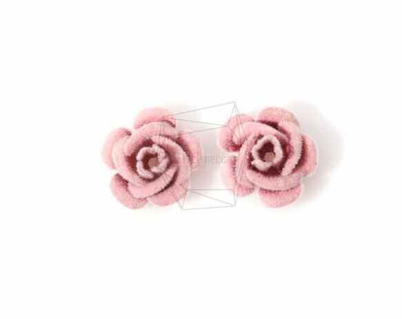 BSC-069-G/4Pcs-mini flocked rose(Pink) Pendant/ 12mm x 12mm /flocked nylon over iron