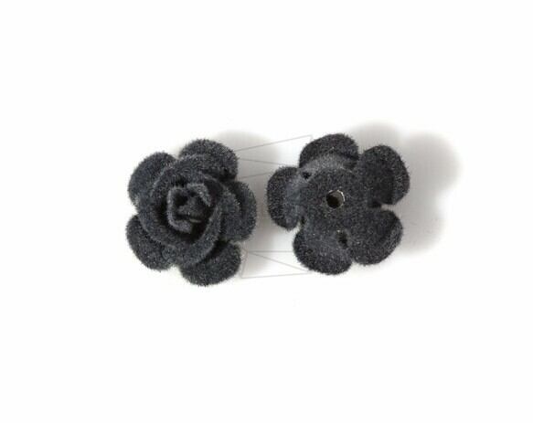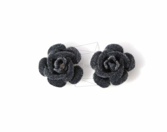 BSC-070-G/4Pcs-mini flocked rose(Gray) Pendant/ 12mm x 12mm /flocked nylon over iron