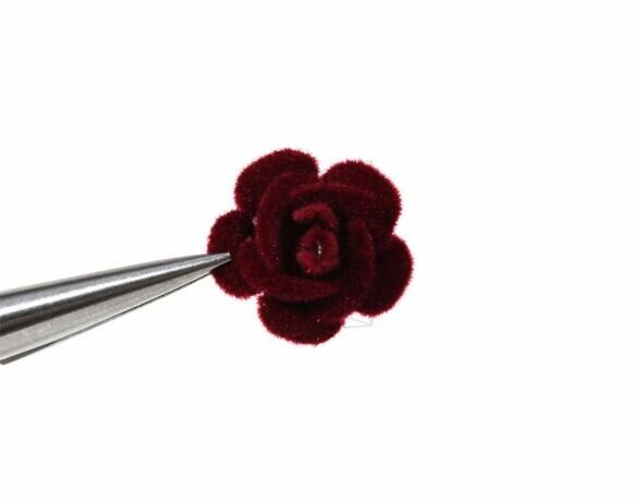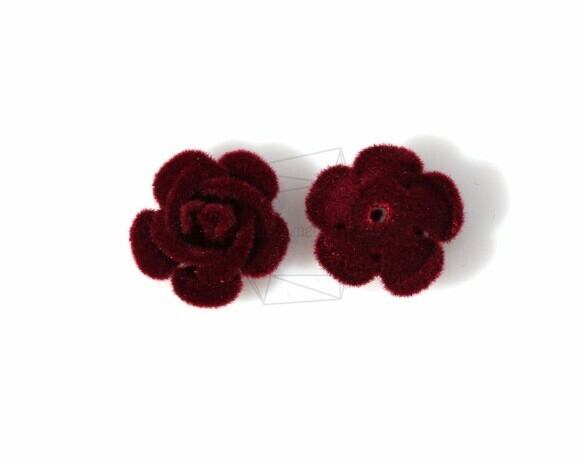 BSC-072-G/4Pcs-mini flocked rose(Red) Pendant/ 12mm x 12mm /flocked nylon over iron