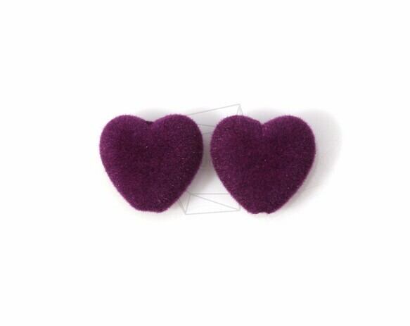BSC-080-G/4Pcs-mini flocked heart(Purple) Pendant/ 18mm x 18mm /flocked nylon over acrylic